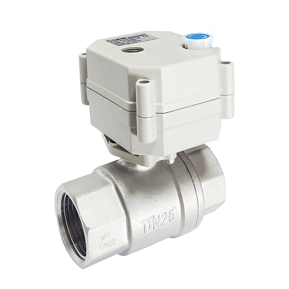 3Nm Electric Ball valve 2 way SS304 with manual override and position indicator. CE certified, IP67, Metal gears, Full bore